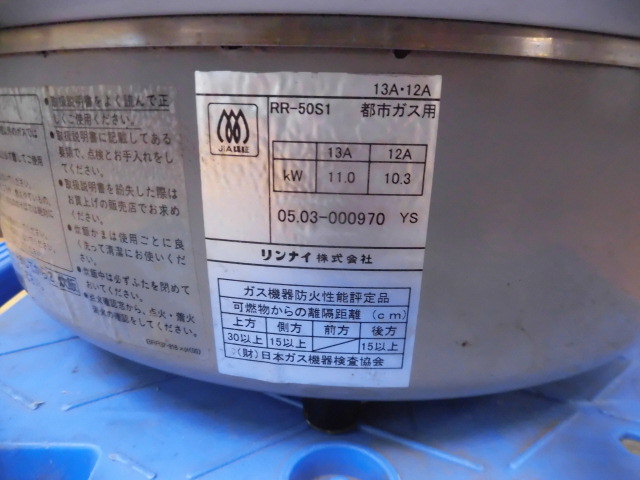 中古厨房 業務用 リンナイ ガス炊飯器 RR-50S1 都市ガス 5.5升 10L 卓上 圧電式 立消え安全装置付 W525×D480×H434mm 店舗 飲食店