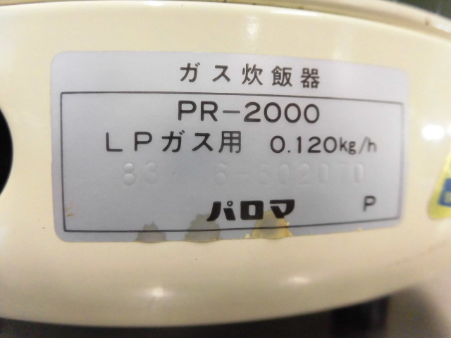 中古厨房 パロマ 業務用 電子ジャー付 ガス炊飯器 PR-2000 2L 11合炊き 1.1升 100V LPガス プロパンガス W340×D320×H340mm 店舗 飲食店