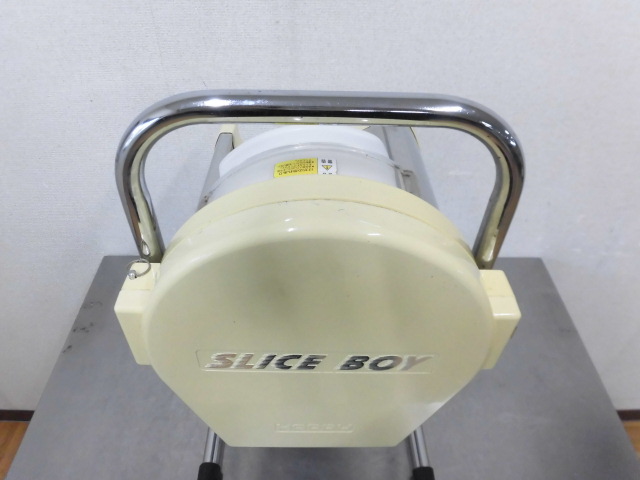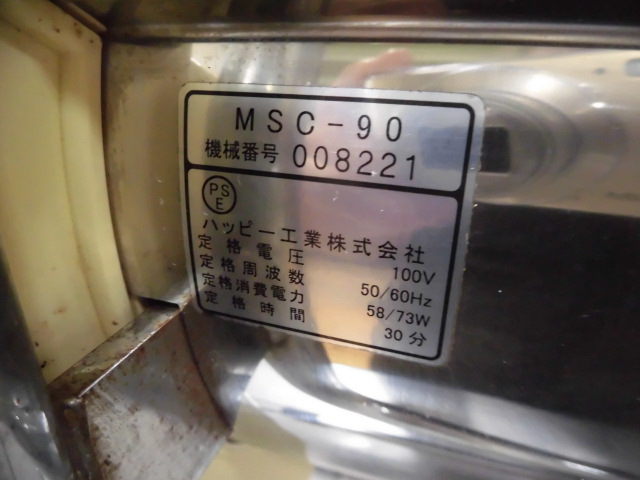中古厨房 業務用 ハッピー工業 卓上 電動 小型 スライサー スライスボーイ MSC-90 100V W340×D320×H520mm スライス円盤 厚さ調節0.8mm