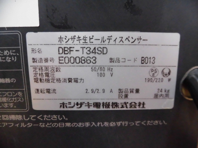 中古厨房 ホシザキ 業務用 1口 ビールサーバー DBF-T34SD 生ビールディスペンサー 100V 減圧弁 アサヒ・サッポロ・サントリー対応