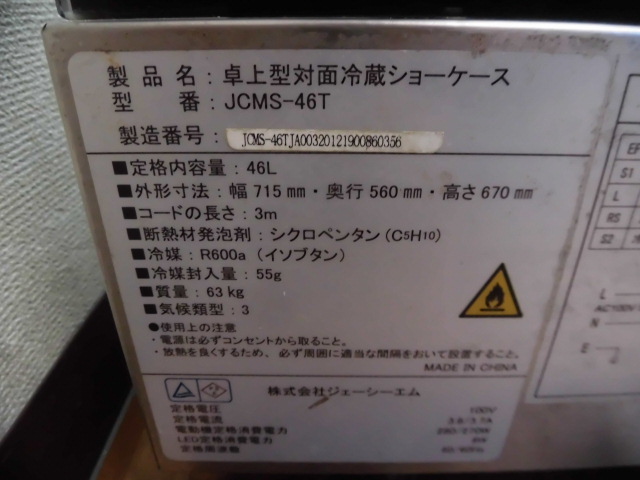 中古厨房 業務用 JCM 卓上 対面 ラウンド型 冷蔵ショーケース ケーキケース ディスプレイ JCMS-46T 100V 46L 4面ガラス 庫内灯 2020年製