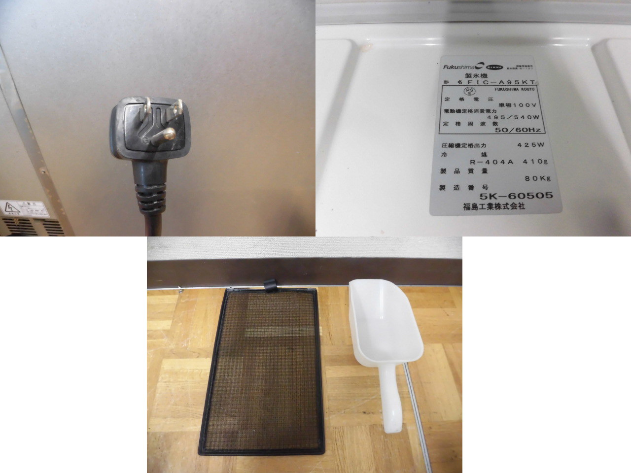 中古厨房 フクシマ 福島工業 業務用 キューブアイス 全自動 製氷機 FIC-95KT 100V 95kg アンダーカウンター W1000×D615×H800