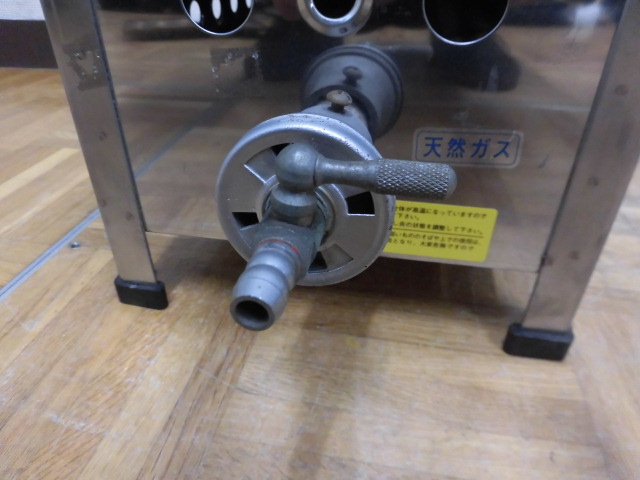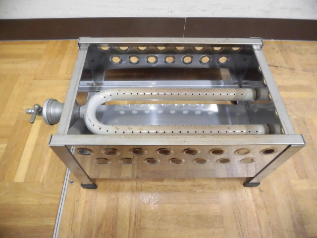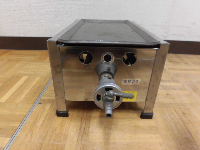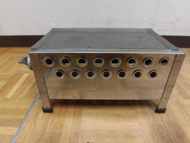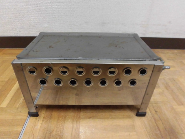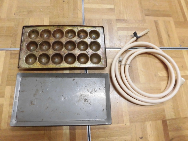 中古厨房 業務用 卓上 たこ焼き器 たこ焼き台 都市ガス 銅板 直径50mm 18穴 深さ20mm 鉄板付き ガスホース W350×D230(450)×H190mm 店舗