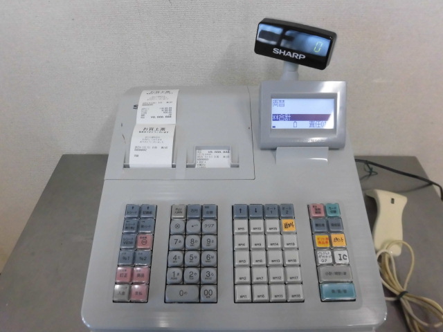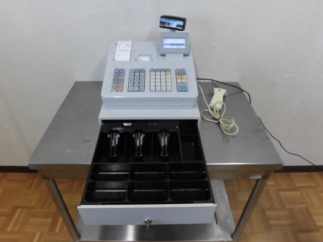 中古厨房 シャープ SHARP 業務用 電子 レジスター XE-A407-W ブロック別キーボード 20部門 3紙幣6硬貨 オートカット 鍵 スキャナ付