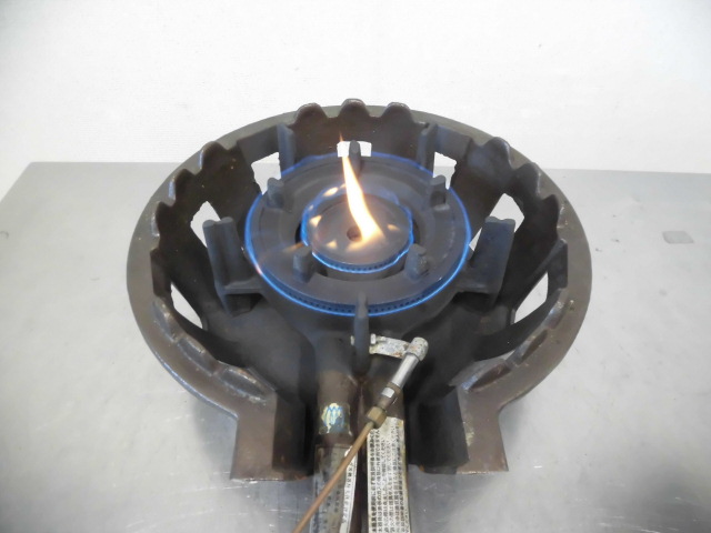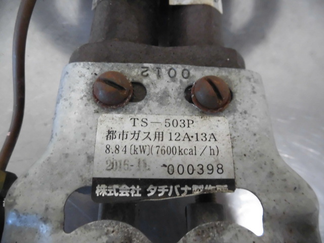 中古厨房 業務用 タチバナ製作所 1口 鋳物 二重 ガスコンロ TS-503P 都市ガス 種火あり 羽根なし W330×D350(520)×H110mm