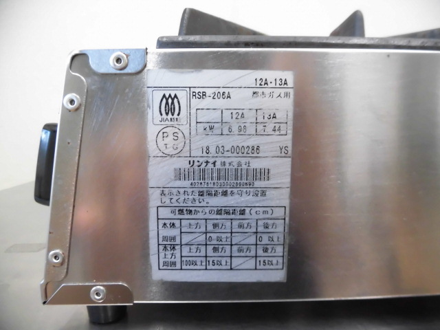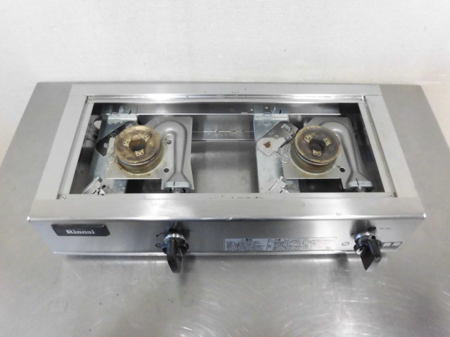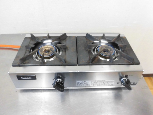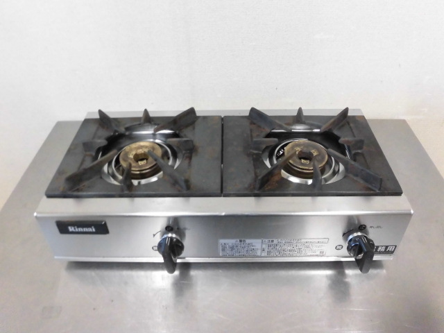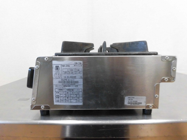 中古厨房 リンナイ 業務用 卓上 コンロ ガステーブル 2口 RSB-206A 都市ガス 圧電式 スタンダードタイプ W542×D275×H151mm 2018年製