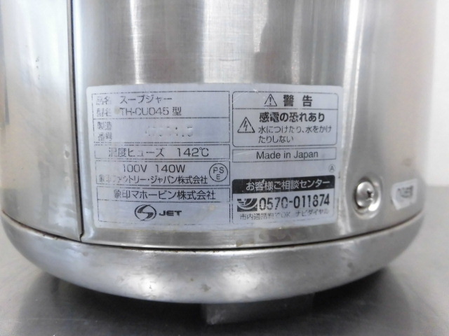 中古厨房 象印 業務用 ステンレス スープジャー TH-CU045 100V 4.5L 20〜30人分 みそ汁 コンソメ ポタージュ ダイレクトスイッチ