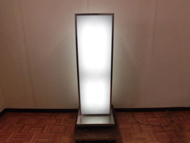 中古厨房 業務用 電気 照明看板 スタンド ストアサイン 100V 自立 両面 アクリル W450×D500×H1295mm キャスター