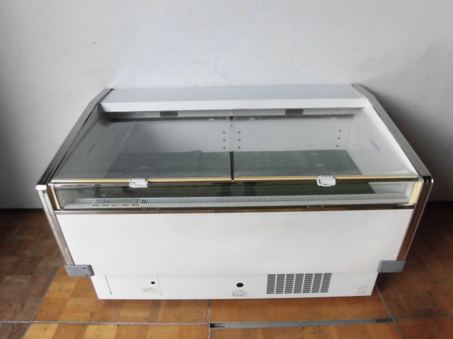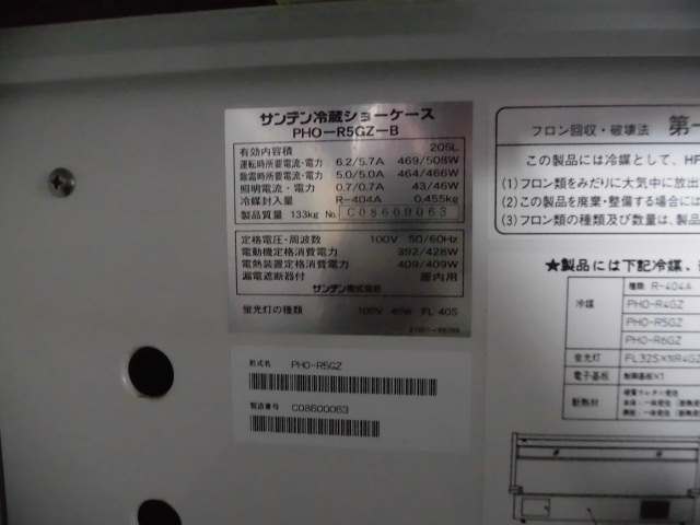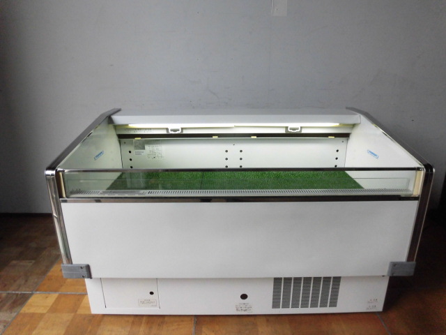 中古厨房 サンデン 業務用 片面 平型 冷蔵 オープン ショーケース PHO-R5GZ-B 205L 100V 照明 ナイトカバー キャスター W1500 D880 H912mm