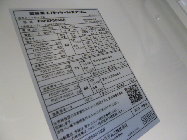 ・能力:3馬力 冷房7.1kW/暖房8.0kW