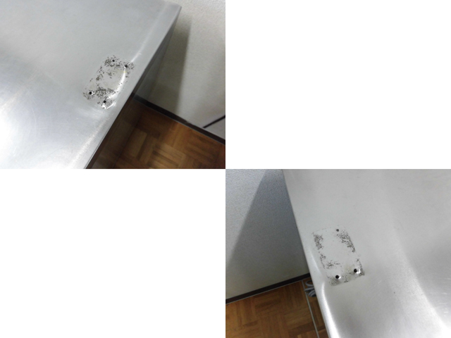 ・天板両端にΦ4mmのビス穴、固定跡がございます。