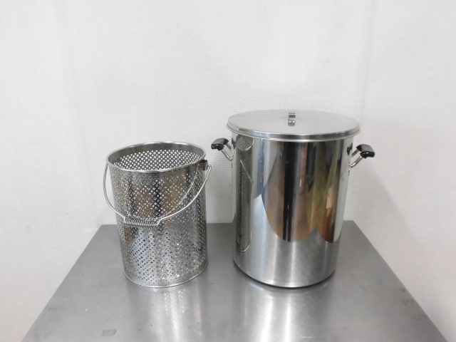 中古厨房 日本電子物性中央研究所 業務用 ステンレス 炭素 煮沸鍋 ポット W330(410)×D330×H420mm 直火 炭素煮沸 電解水 電子水 蓋付