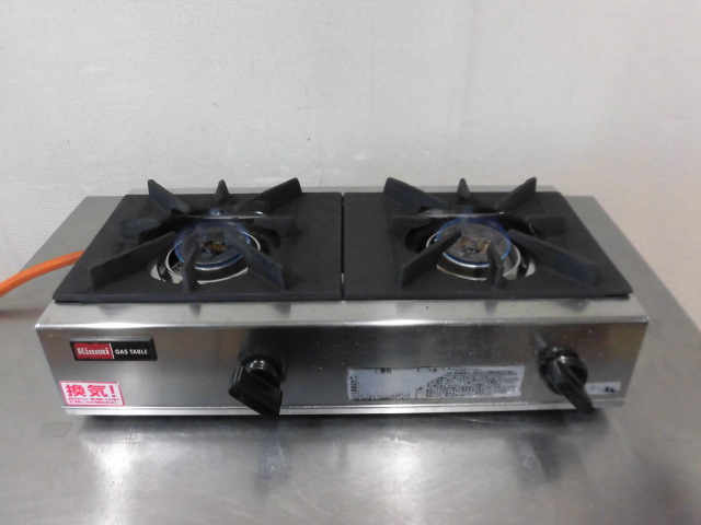 中古厨房 リンナイ 業務用 卓上 コンロ ガステーブル 2口 RSB-206A 都市ガス 圧電式 スタンダードタイプ W542×D275×H151mm