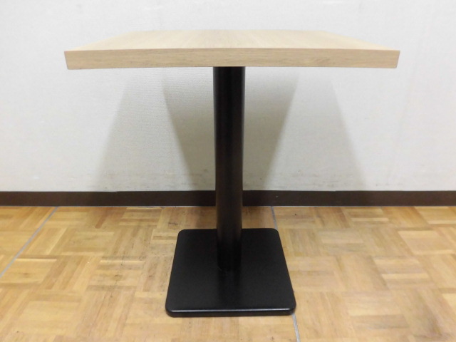 中古厨房 業務用 角型 カフェテーブル 木目調 1本脚 W550×D450×H700mm 店舗 飲食店 フードコート ダイニング 1人・2人用