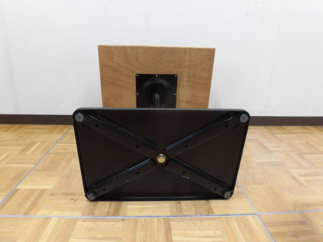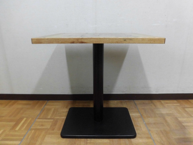 中古厨房 業務用 角型 カフェテーブル 木目調 1本脚 W650×D550×H700mm 1人・2人用 店舗 飲食店 フードコート ダイニング