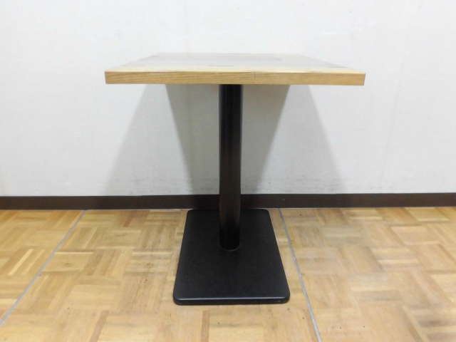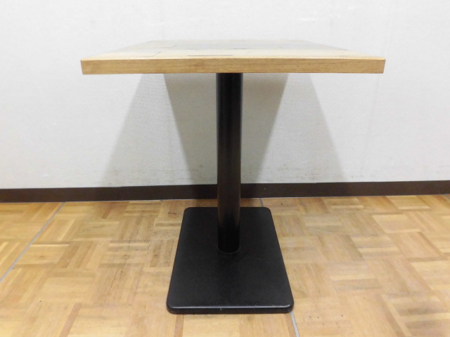 中古厨房 業務用 角型 カフェテーブル 木目調 1本脚 W650×D550×H700mm 1人・2人用 店舗 飲食店 フードコート ダイニング