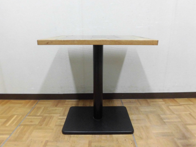 中古厨房 業務用 角型 カフェテーブル 木目調 1本脚 W650×D550×H700mm 1人・2人用 店舗 飲食店 フードコート ダイニング