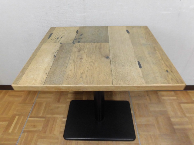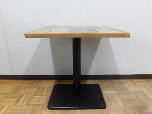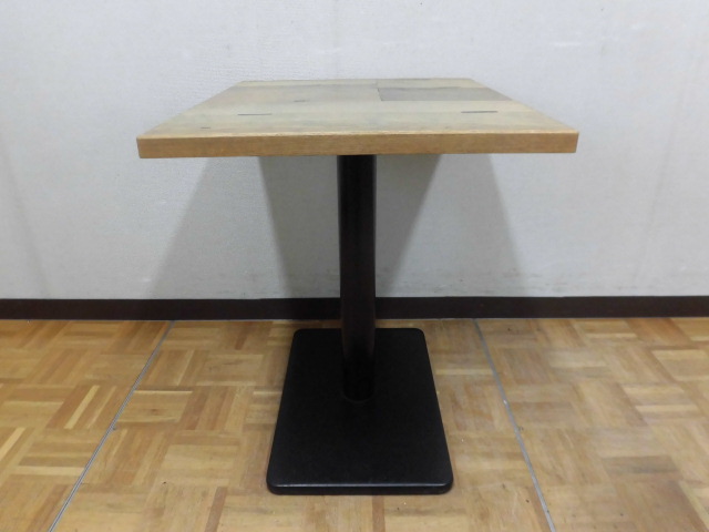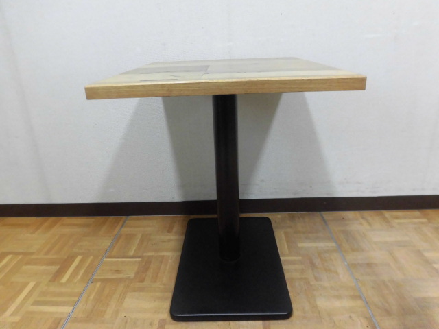 中古厨房 業務用 角型 カフェテーブル 木目調 1本脚 W650×D550×H700mm 1人・2人用 店舗 飲食店 フードコート ダイニング
