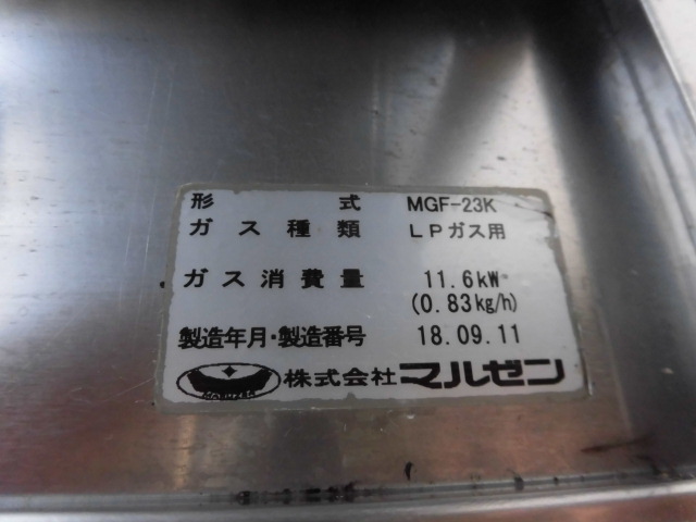 中古厨房 マルゼン 業務用 1槽 ガスフライヤー MGF-23K 23L 都市ガス サーモスタット 160℃〜220℃ W530×D600×H800(BG950)mm 2018年製