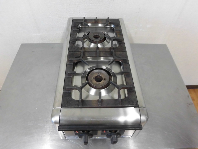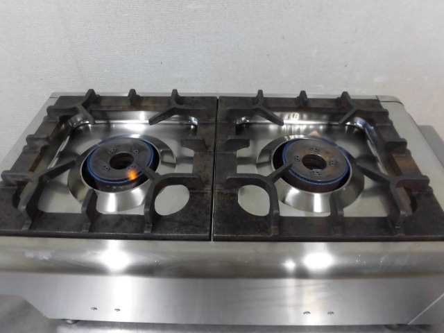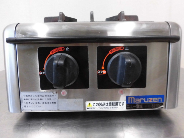 中古厨房 マルゼン 業務用 卓上 2口 ガステーブル コンロ M-822DC 都市ガス 縦置 ニュー飯城 圧電式 W300×D590×H190mm 2021年製