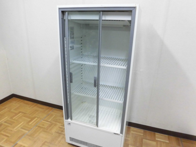 中古厨房 業務用 サンデン 冷蔵ショーケース VRS-106XE 100V 194L キュービック 超薄型 中瓶106本 大瓶89本 スライド扉 キャスター 2018年