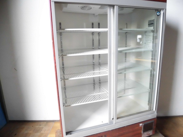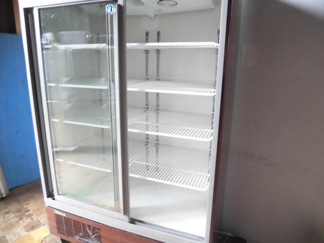 中古厨房 ホシザキ 業務用 リーチイン 冷蔵ショーケース RSC-120C-B 100V 781L 中ビン427本 大ビン400本 木目調 スライド扉 照明付き