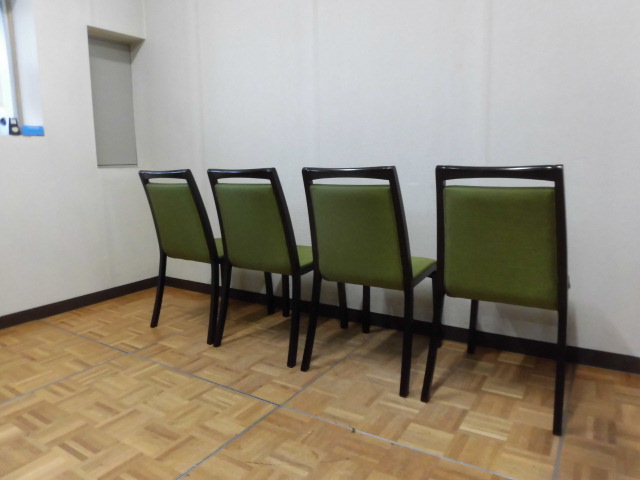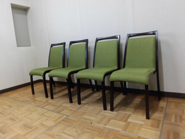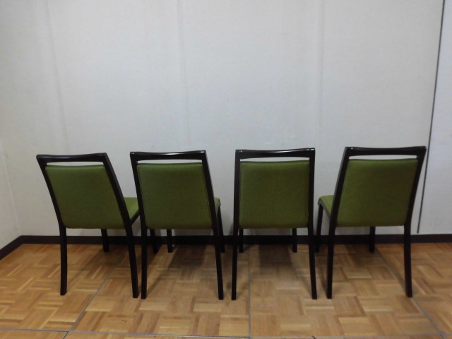 中古厨房 パブリック 業務用 椅子 ダイニング チェア 4脚セット W450×D480×H880mm モスグリーン 緑色 店舗 飲食店 食堂 レストラン