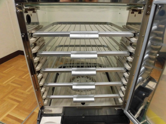 中古厨房 業務用 日本ヒーター 中華まん蒸し器 スチーマー スチームマスター MJ45SA 9段 45個収納 棚板5枚 肉まん あんまん 庫内灯付き