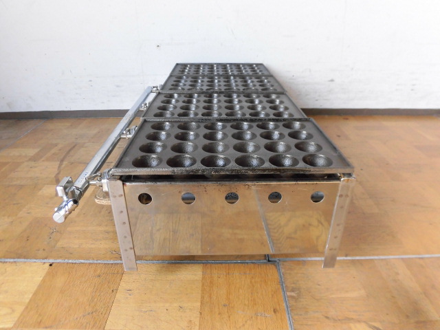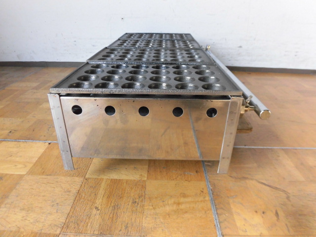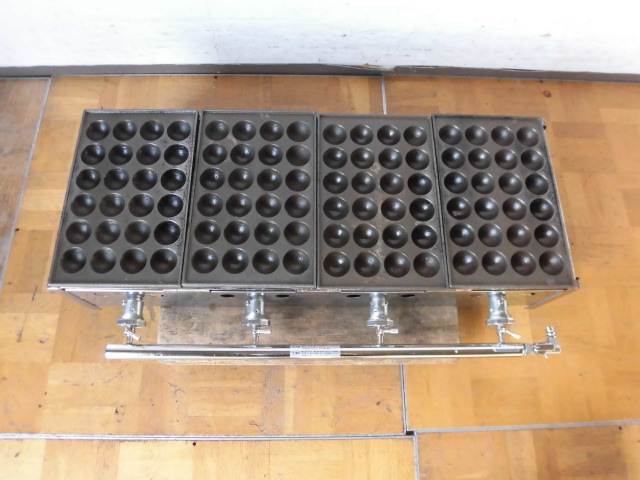 中古厨房 業務用 卓上 4連 たこ焼き器 たこ焼き台 都市ガス 鉄板4枚 直径45mm 深さ20mm 24穴×4 バーナー4本 W945×D480×D195mm