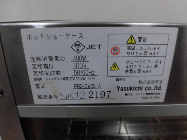 中古厨房 業務用 安吉 キプロスター 卓上 温蔵 ショーケース PRO-6WSE-A 100V 30℃〜85℃ ホットショーケース 庫内灯 スライド扉 2021年製