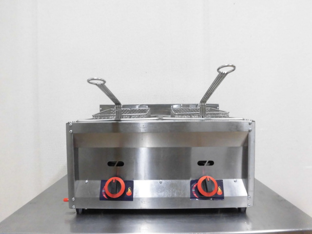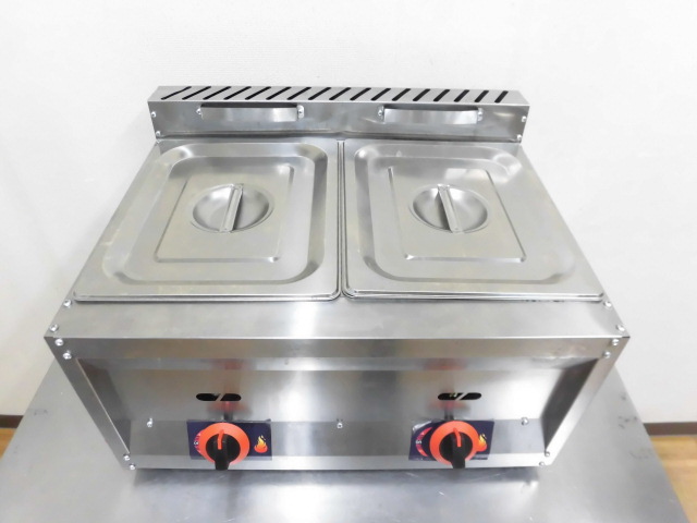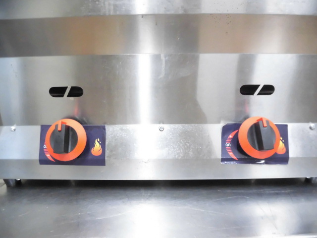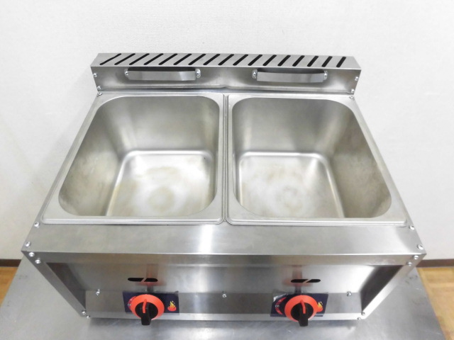 中古厨房 業務用 2槽 フード ウォーマー LPガス プロパンガス ホテルパン かご ガスホース W550(580)×D470×H280(BG340)mm