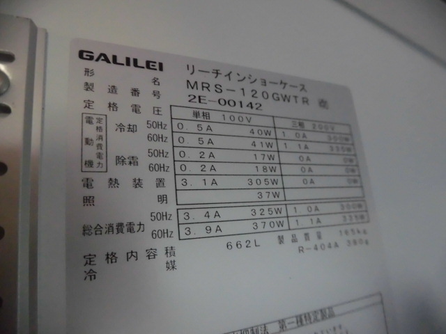 中古厨房 フクシマガリレイ 業務用 縦型 リーチイン 冷蔵 ショーケース MRS-120GWTR改 662L 単相 100V 三相 200V 庫内灯付き 2022年製