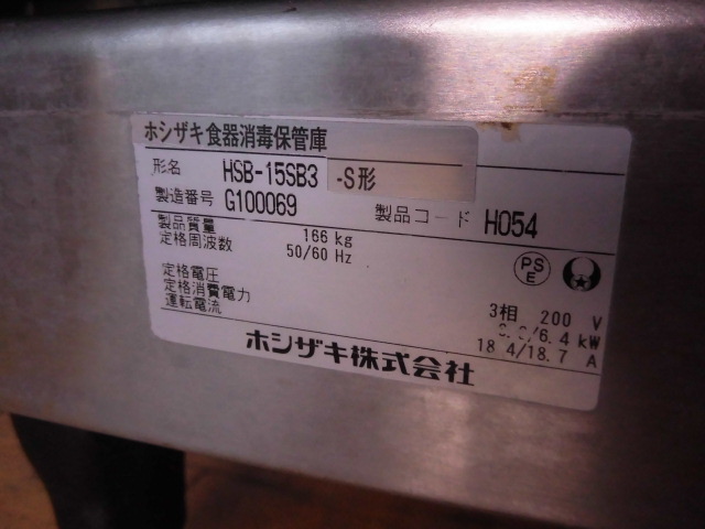 中古厨房 ホシザキ 業務用 電気式 食器 消毒保管庫 消毒機 HSB-15SB3-S 三相 200V 4段 12カゴ 片面扉 殺菌庫 給食 調理器具 2017年製