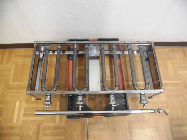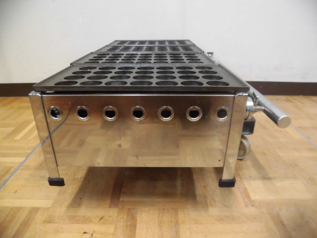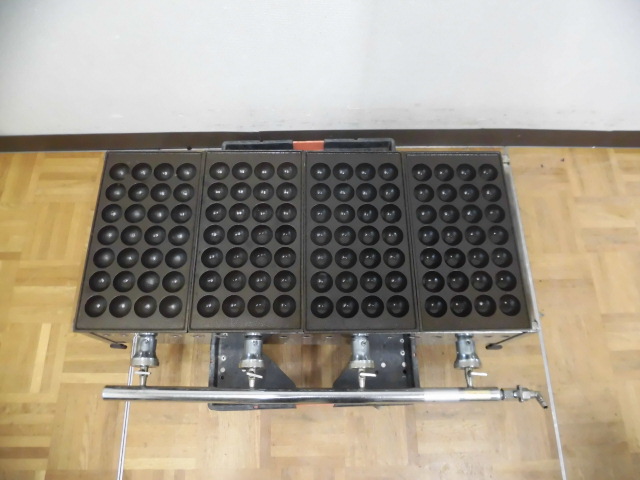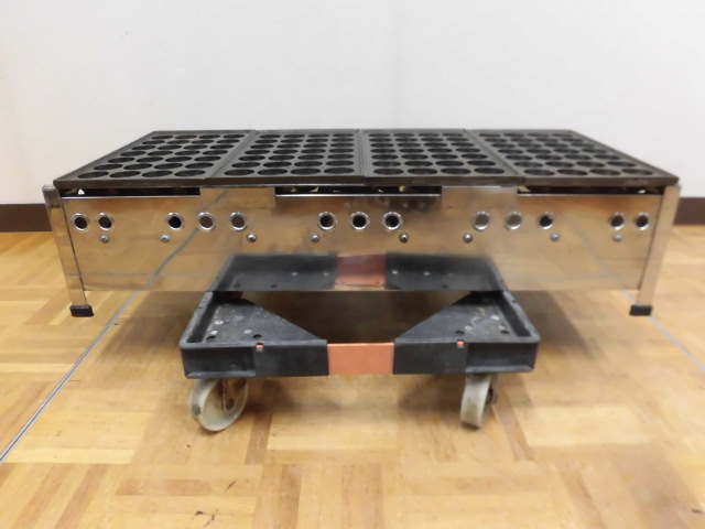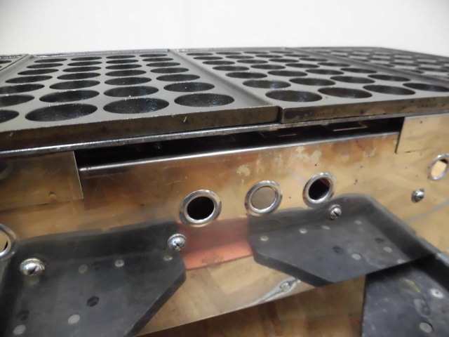 中古厨房 業務用 4連 たこ焼き器 たこ焼き台 LPガス プロパンガス 鉄板4枚 直径38mm 深さ19mm 112個 28穴×4 W785×D345×H195mm 店舗