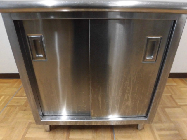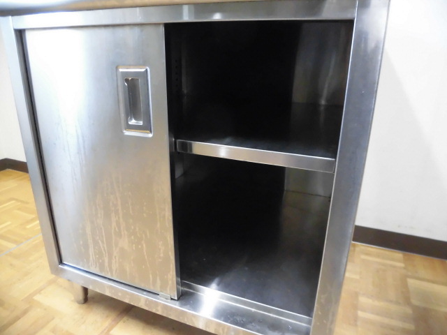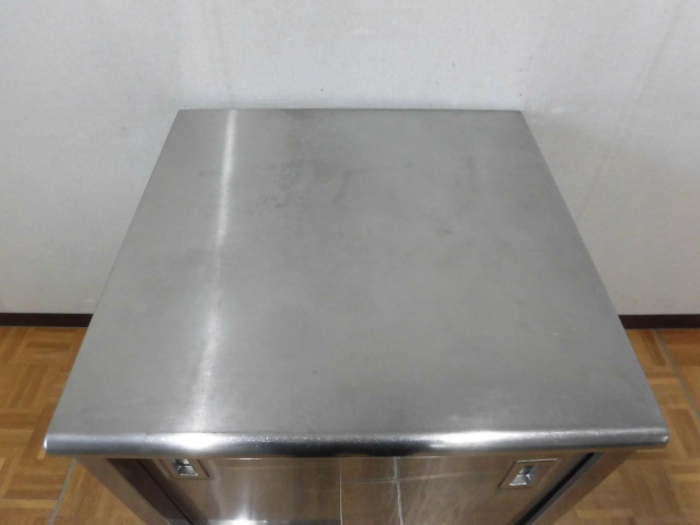 中古厨房 業務用 ステンレス 食器庫 収納庫 食器棚 両開き スライド扉 棚1枚 W750×D750×H830mm 調整脚+25mm 店舗 飲食店