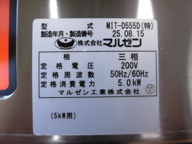 未使用品 業務用 マルゼン 3口 IHクリーンコンロ MIT-D555D(特) 三相 200V セラミックプレート W1190×D750×H785mm 取説付き 2025年製