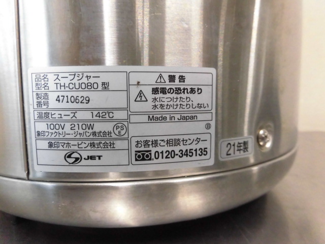 中古厨房 象印 業務用 ステンレス スープジャー TH-CU080 100V 8L 40人〜60人分 スープウォーマー マイコン W365×D315×H375mm 2021年製