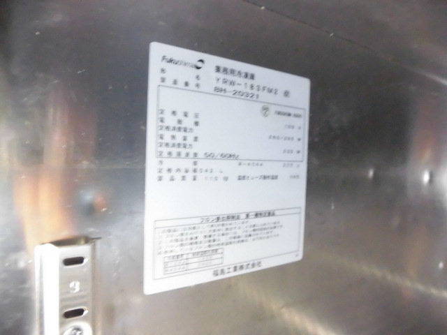 中古厨房 フクシマガリレイ 業務用 台下 冷凍庫 フリーザー YWR-183FM2(改) 100V 542L コールドテーブル 右ユニット -25〜-15℃ 2018年製