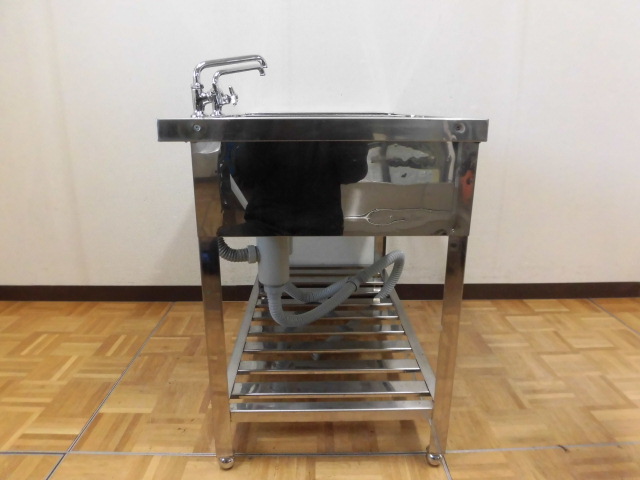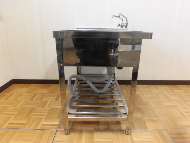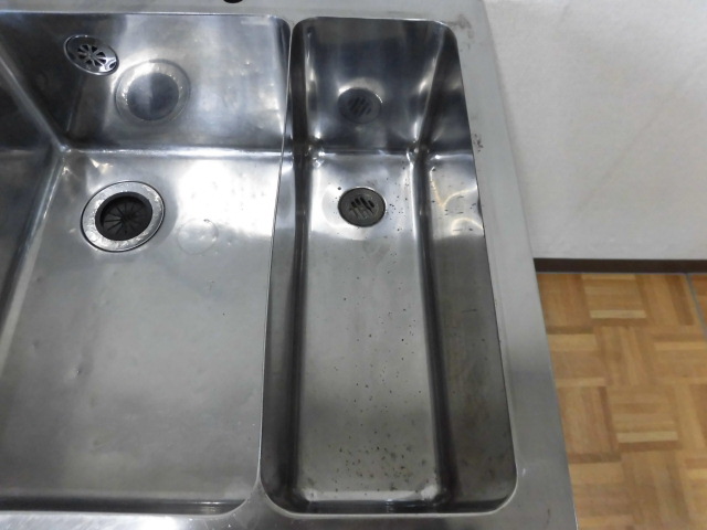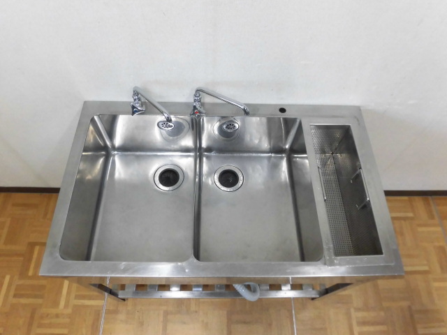 中古厨房 業務用 ステンレス 2槽シンク ゴミ入れ付き 蛇口2本 W1000×D600×H790mm 調整脚+35mm 深さ225mm 店舗 飲食店 洗い場