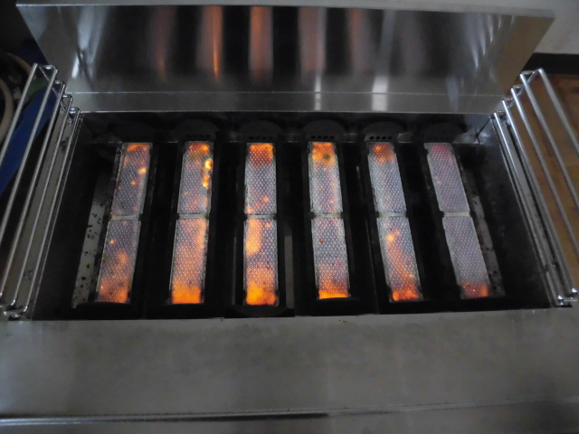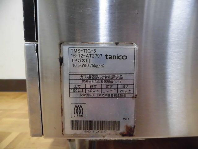 中古厨房 業務用 タニコー 下火式 焼物器 ガス赤外線 6連 グリラー TMS-TIG-6 LPガス プロパンガス 圧電式 焼き網付き W710×D515×H230mm