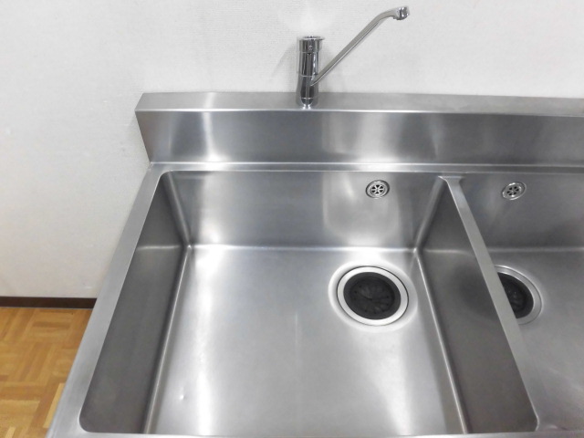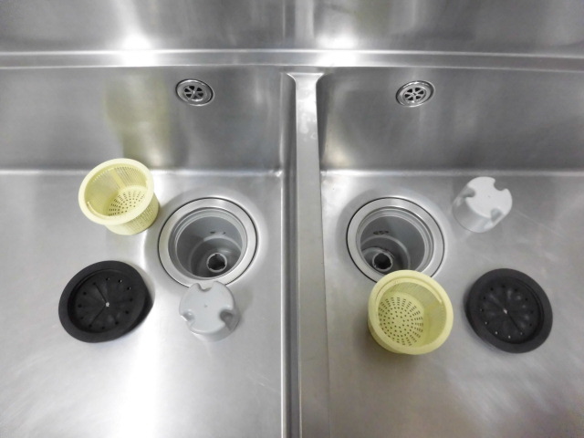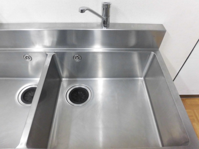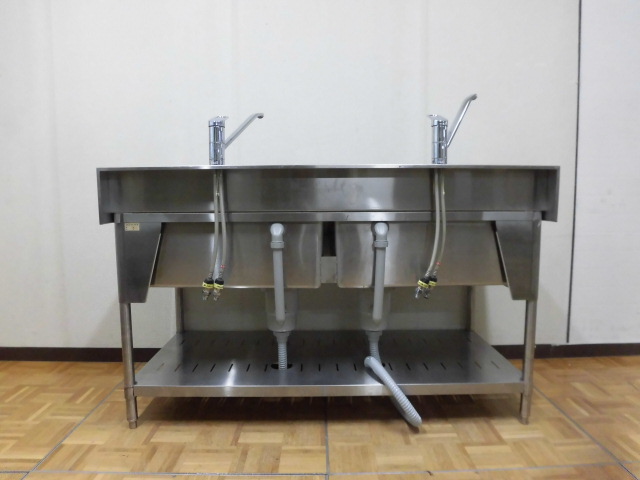 中古厨房 業務用 2槽シンク 流し台 ステンレス 混合水栓 W1500×D750×H785(BG935)mm 調整脚+30mm 深さ253mm 店舗 飲食店 洗い場