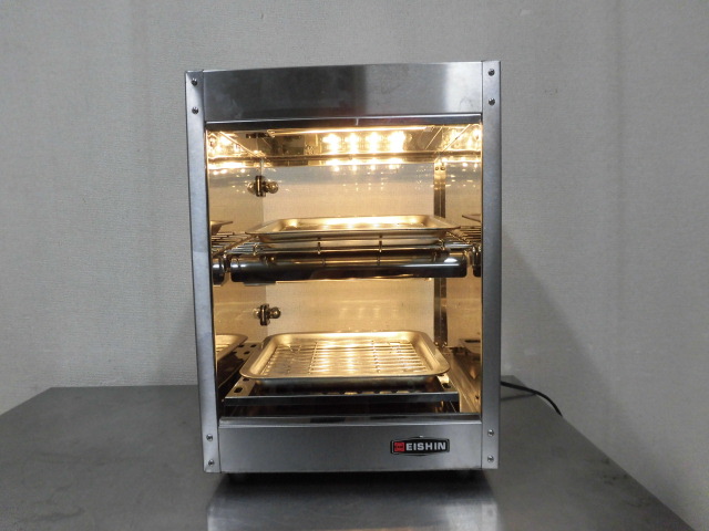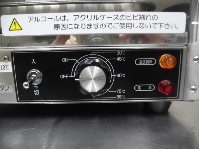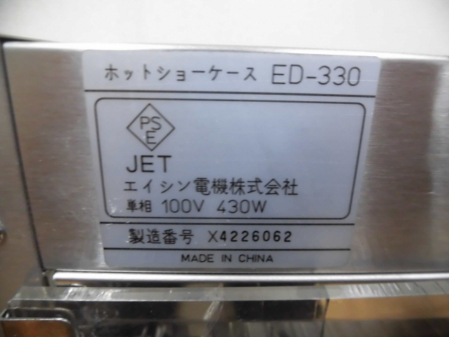 中古厨房 業務用 エイシン電機 卓上 温蔵 ホットショーケース ED-330 100V フードウォーマー 前面ガラス 30〜85℃ 三方向ヒーター 庫内灯