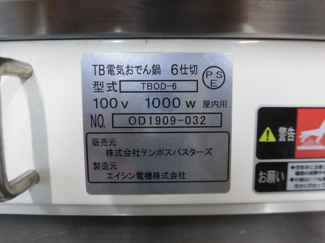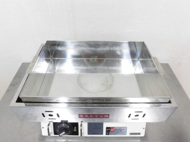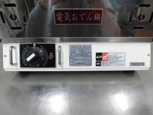 中古厨房 エイシン電機 業務用 卓上 電気式 おでん鍋 TBOD-6 100V フードウォーマー 木製蓋付き W485×D350×H220(270)mm 仕切り欠品