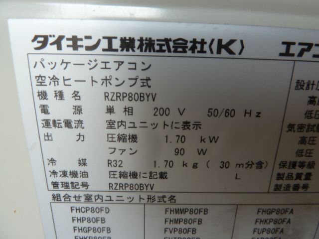 ・能力:3馬力 冷房7.1kW/暖房8.0kW