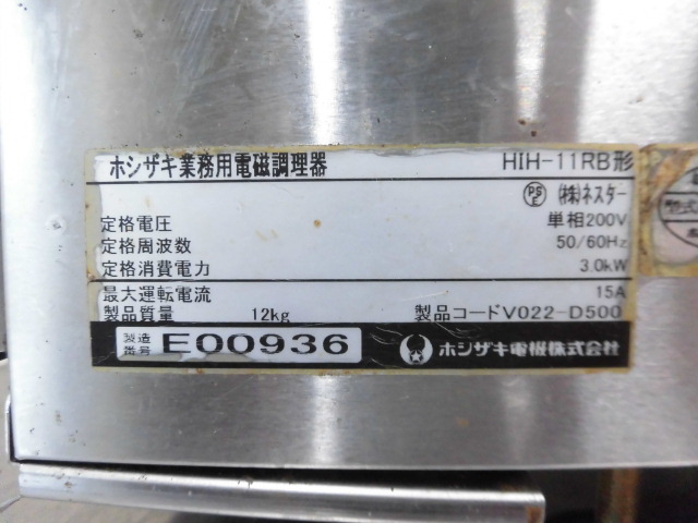 中古厨房 ホシザキ 業務用 卓上 電磁 調理器 縦 2口 IHコンロ HIH-11RB 単相 200V 1.5kW×2 W230×D600×H217mm