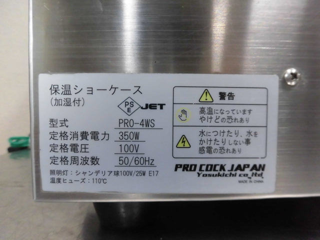 中古厨房 業務用 安吉 キプロスター 卓上 温蔵ショーケース 加湿付 PRO-4WS 100V ホットショーケース 両面スライド扉 可変サーモ付 保温