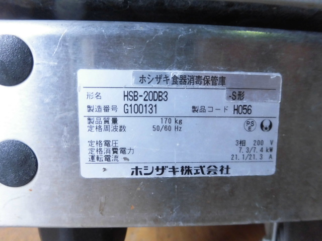 中古厨房 ホシザキ 業務用 電気式 食器 消毒保管庫 消毒機 乾燥 HSB-20DB3 三相 200V 奥行2列 4列5段 殺菌庫 給食 調理器具 2017年製