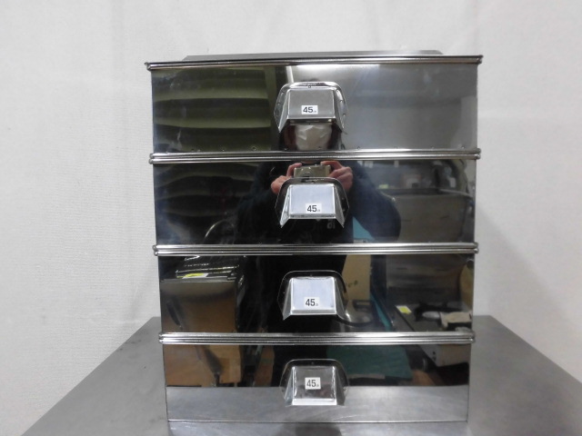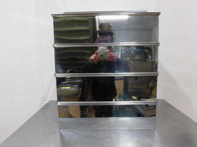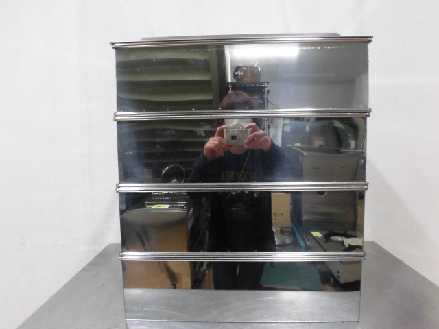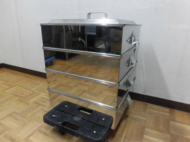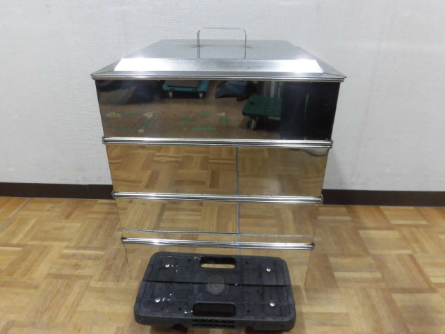 中古厨房 業務用 ステンレス製 角型 蒸し器 天地4段 取っ手付 W470×D470×H590mm 蓋 すのこ 蒸し物 蒸籠 せいろ 飲茶 店舗 飲食店