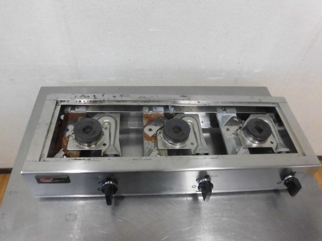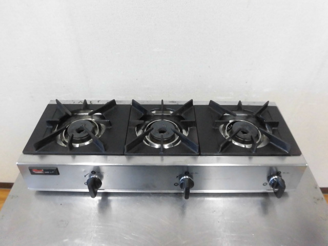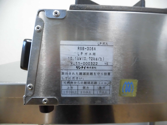 中古厨房 リンナイ 業務用 卓上 ガステーブル コンロ 3口 RSB-306A LPガス プロパンガス 圧電式 コンパクト W740×D275(310)×H150mm