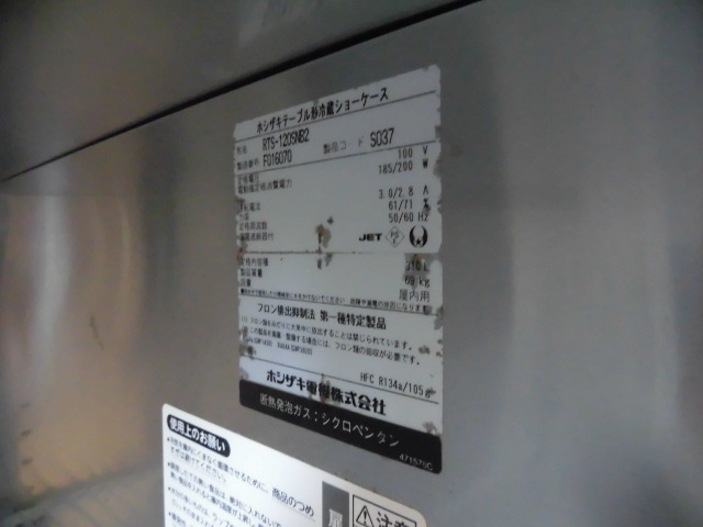 中古厨房 ホシザキ 業務用 台下 冷蔵ショーケース コールドテーブル RTS-120SNB2 100V 310L 中ビン178本 大ビン161本 庫内灯 マイコン制御